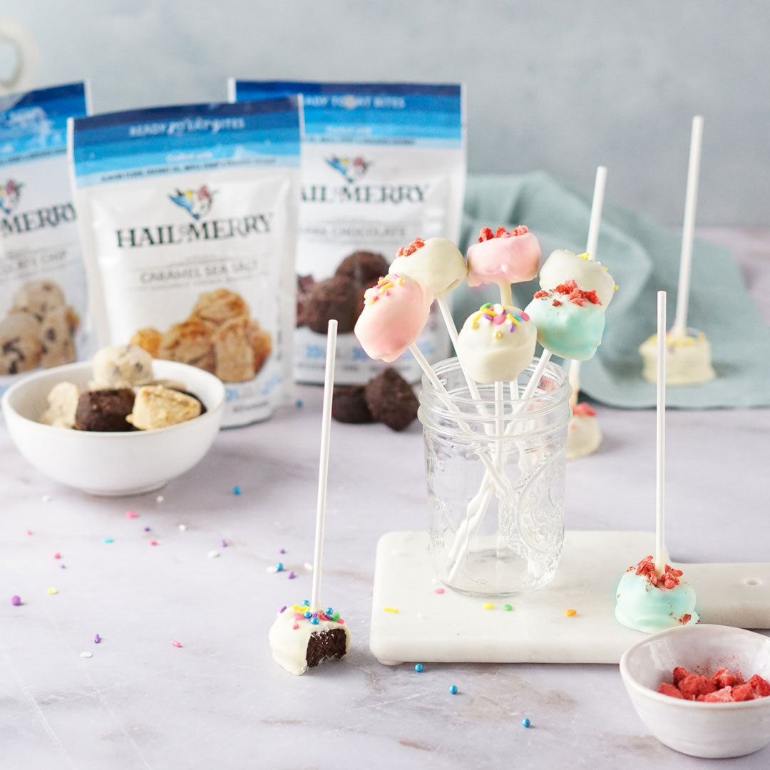 - Roughly chop Hail Merry Almond Butter Dark Chocolate Cups and crumble Hail Merry Chocolate Chip Coconut Cookie Dough.